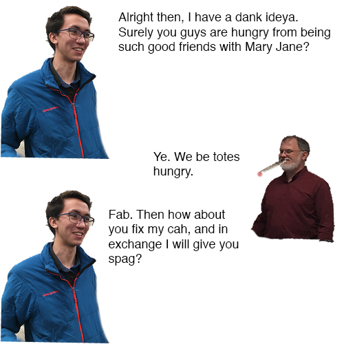 Background: While I was flying up to Alaska from California, Tristan sent me a message saying that his car broke