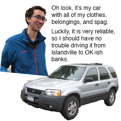 Background: While I was flying up to Alaska from California, Tristan sent me a message saying that his car broke